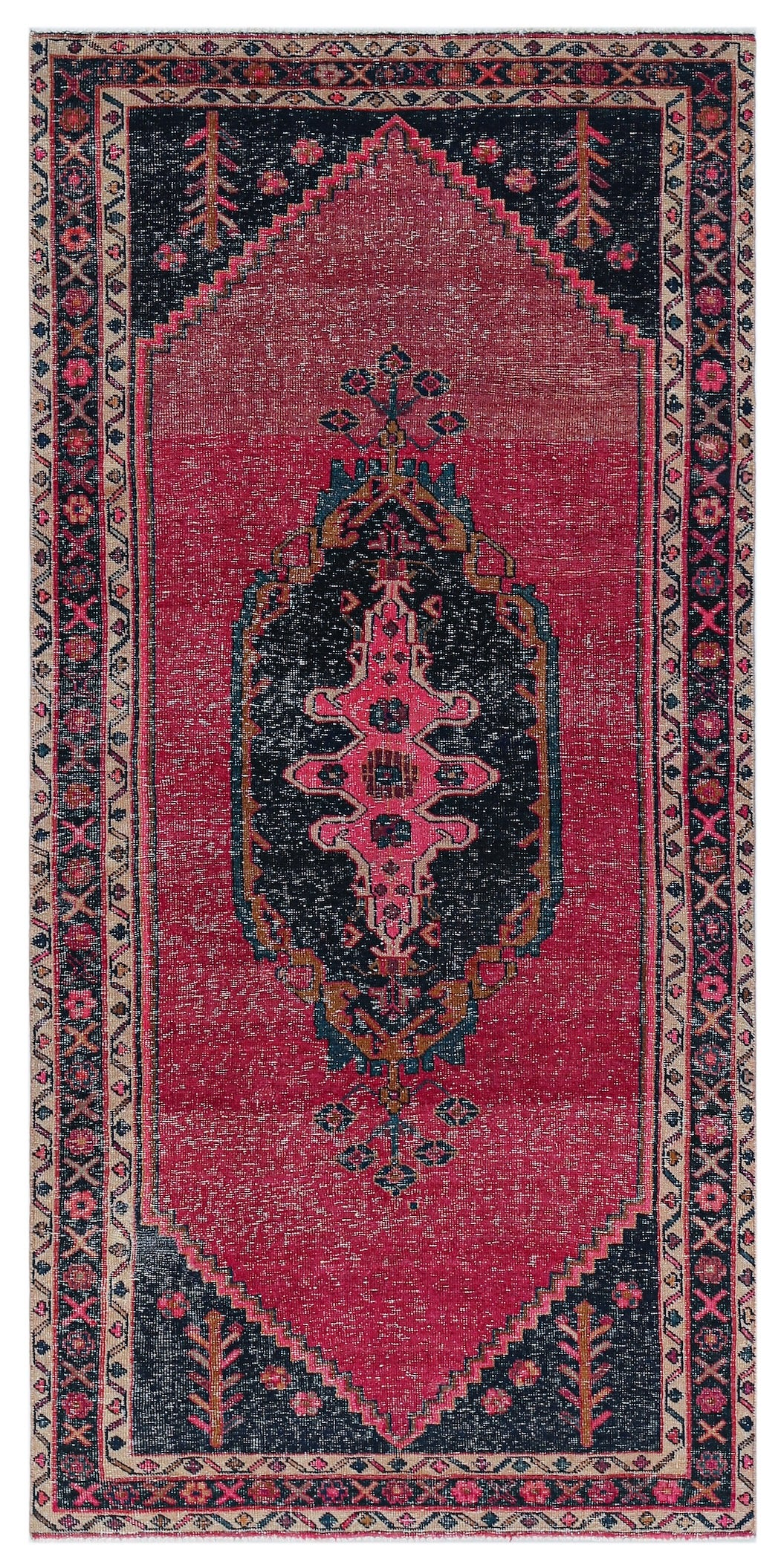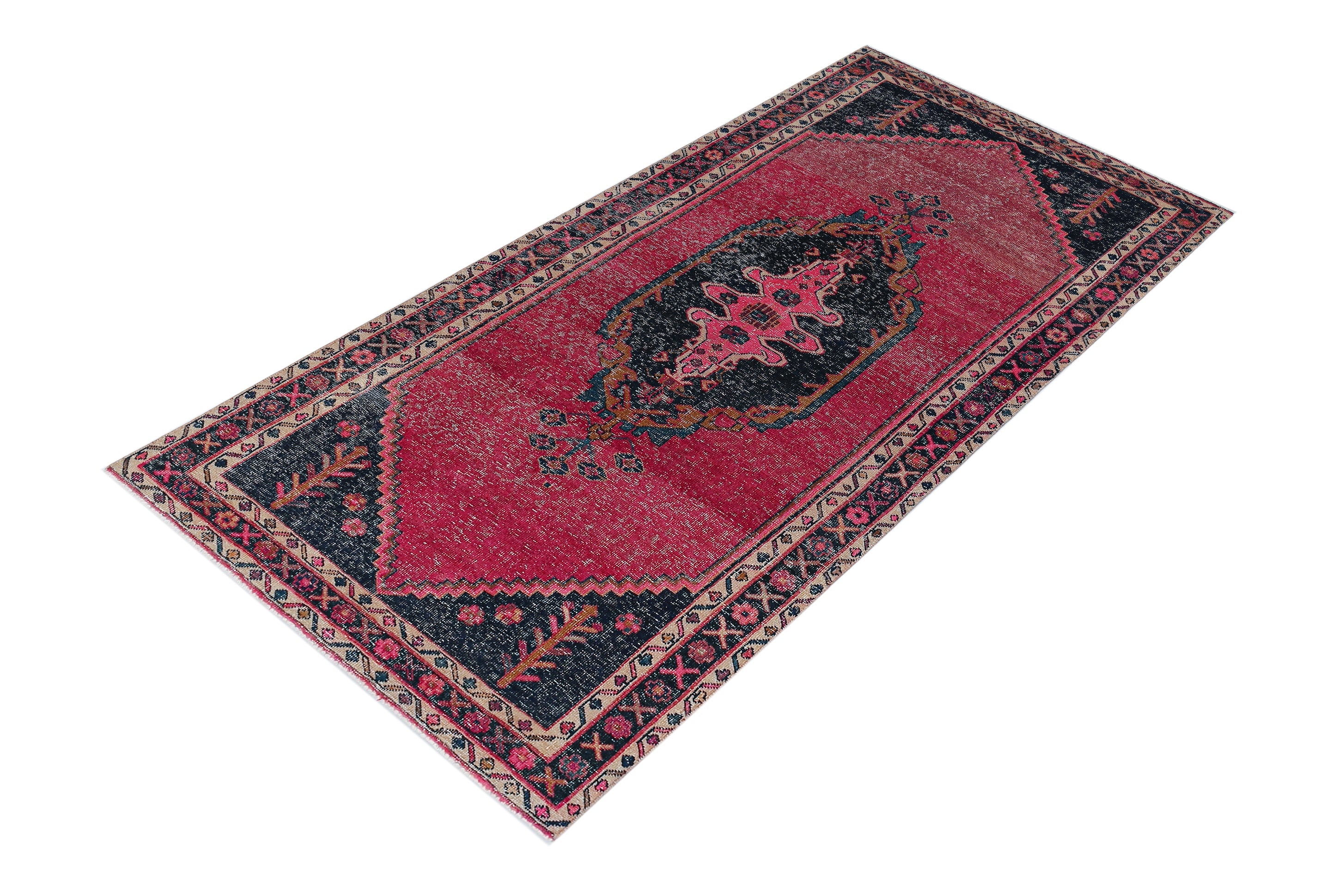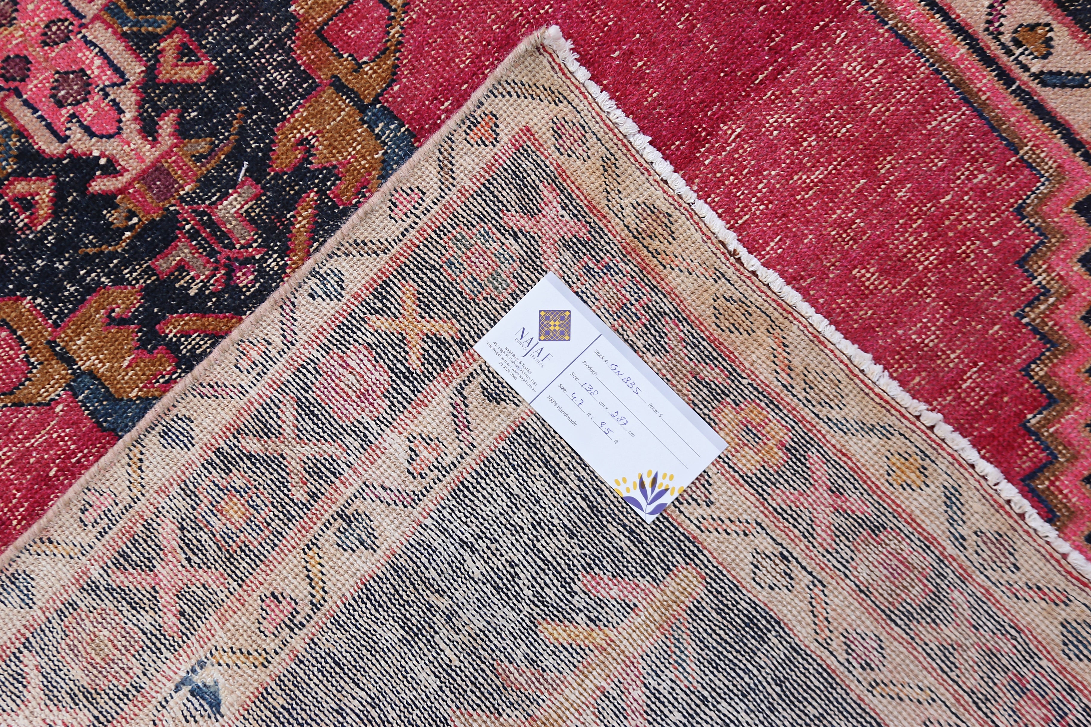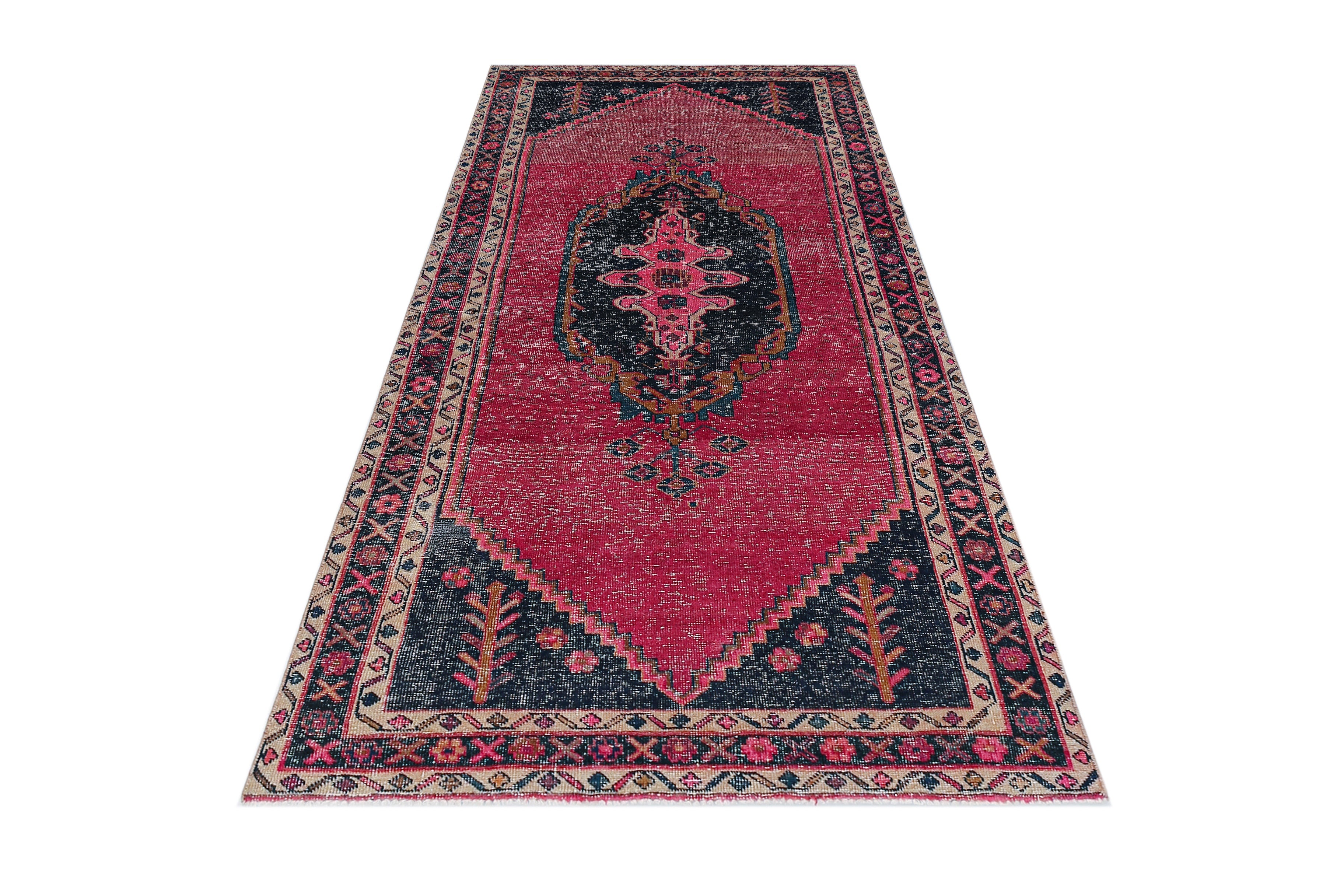 This vintage Persian rug showcases an elegant floral design, highlighted by its central medallion and framed by intricate borders. The warm base tones are beautifully complemented by vibrant pinks and blues, creating a striking yet harmonious colour palette. Hand-knotted with precision, this rug combines exceptional craftsmanship with a soft, durable texture. Its slightly worn finish enhances its vintage appeal, adding depth and character to the piece.
