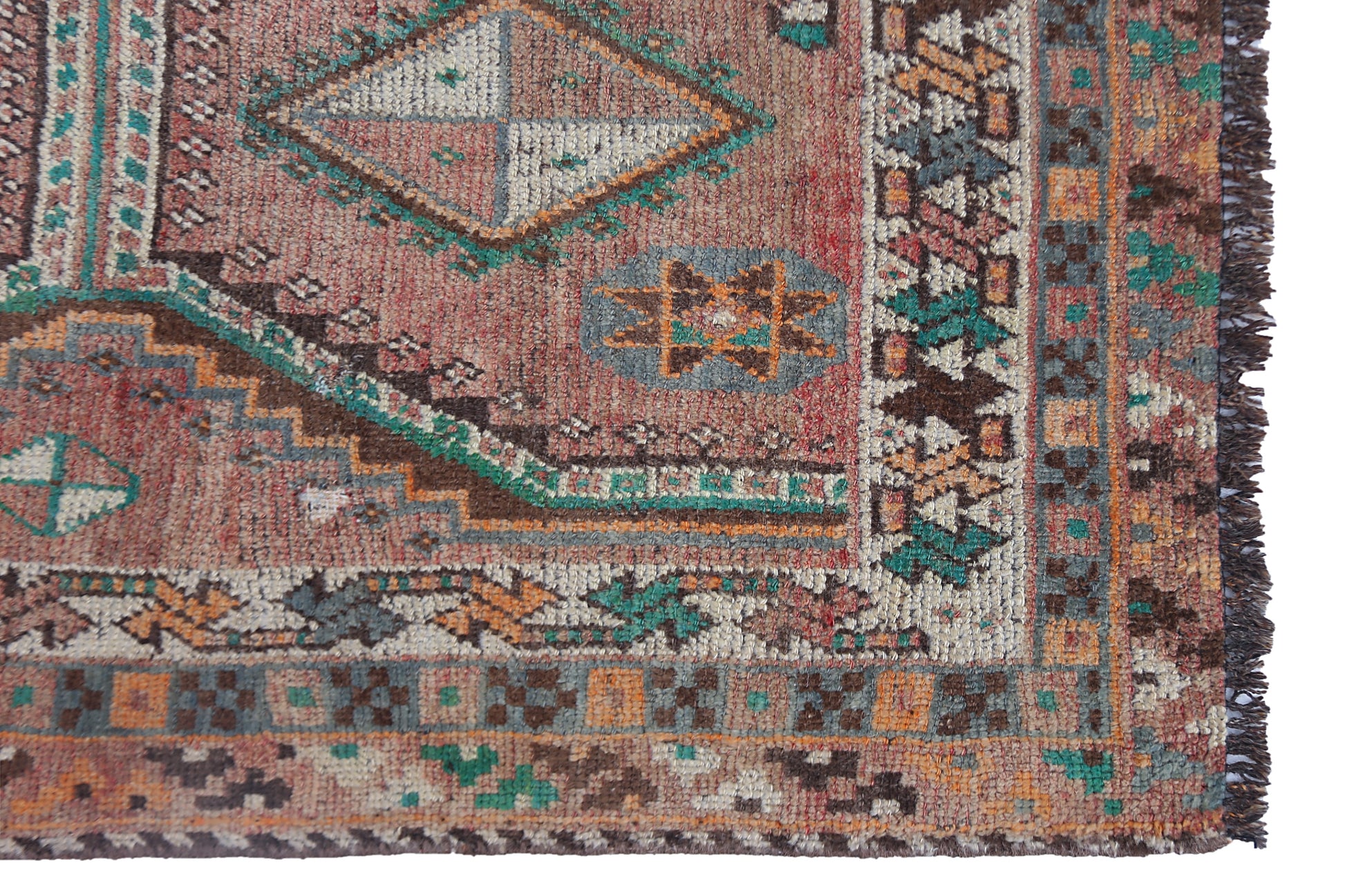 The designs are bold and geometric, diamond medallions, stylised animals, botanical symbols and tribal motifs worked entirely from memory. No two rugs carry exactly the same interpretation. Slight distortions in the shape and shifts in tone across the field are part of how the rug was made, not flaws in it. As a vintage piece, the colours have already mellowed and the pile has settled. What you're looking at has only improved with time.